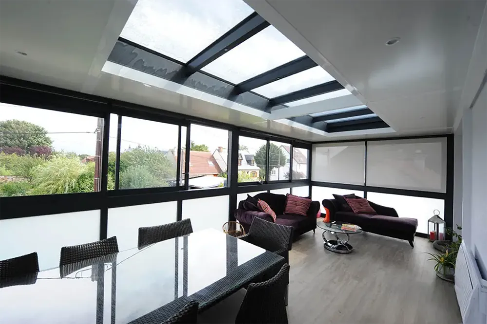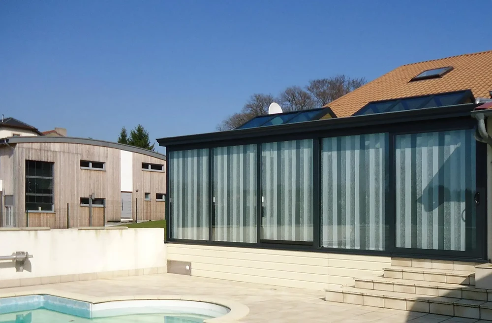 Nos vérandas intègrent des profilés aluminium à rupture de pont thermique qui limitent considérablement les transferts de chaleur. Cette technologie, associée à un double vitrage haute performance et potentiellement à des traitements spécifiques des vitrages, vous procure un confort thermique optimal en toute saison.